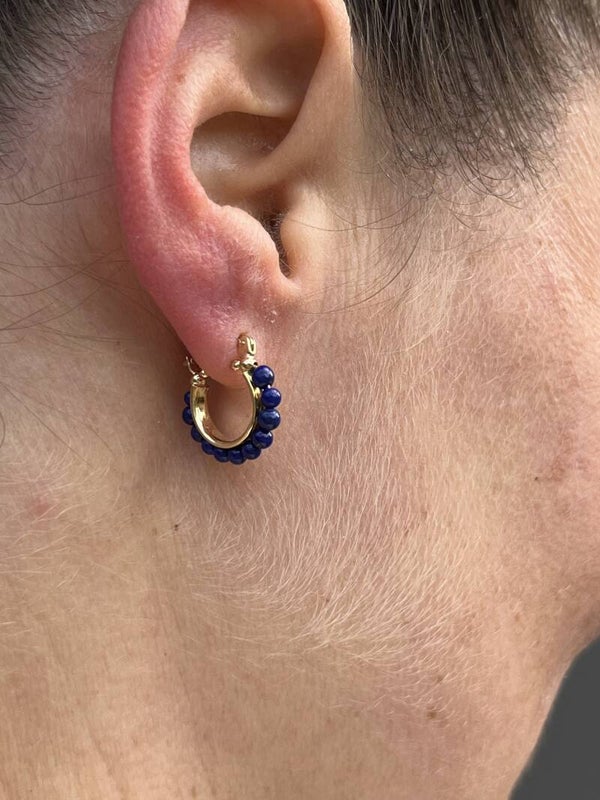 14Krt Geelgouden creolen met Lapis Lazulli